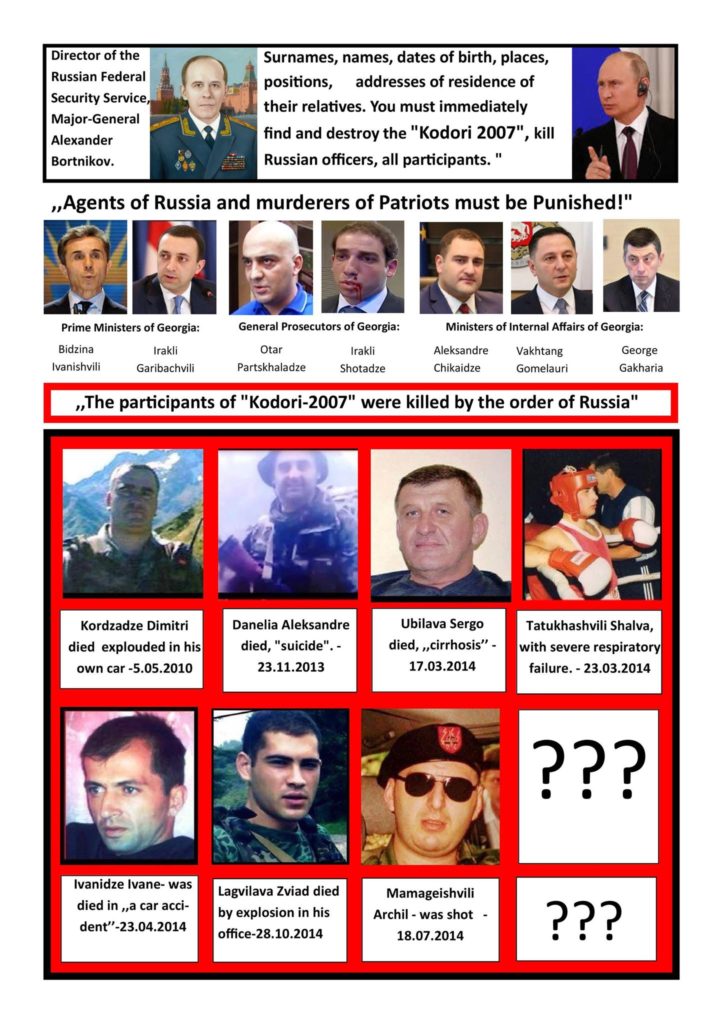 After Putin and Ivanishvili’s “Georgian Dream” came to power, Special Operation “Kodori 2007” guys die one by one…The authorities are not only investigating these cases, but they also indicate that they are behind the killings, along with the Russian special services…